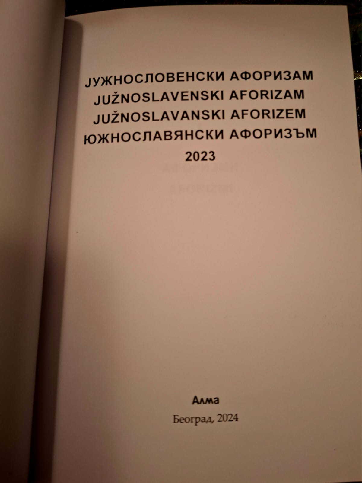 S velikim zakašnjenjem, renomirana beogradska izdavačka kuća ALMA, tiskala je zbornik pod naslovom ” Južnoslavenski aforizm “, koji je uredio beogradski antolologičar dr.sc. Đorđe Otašević.