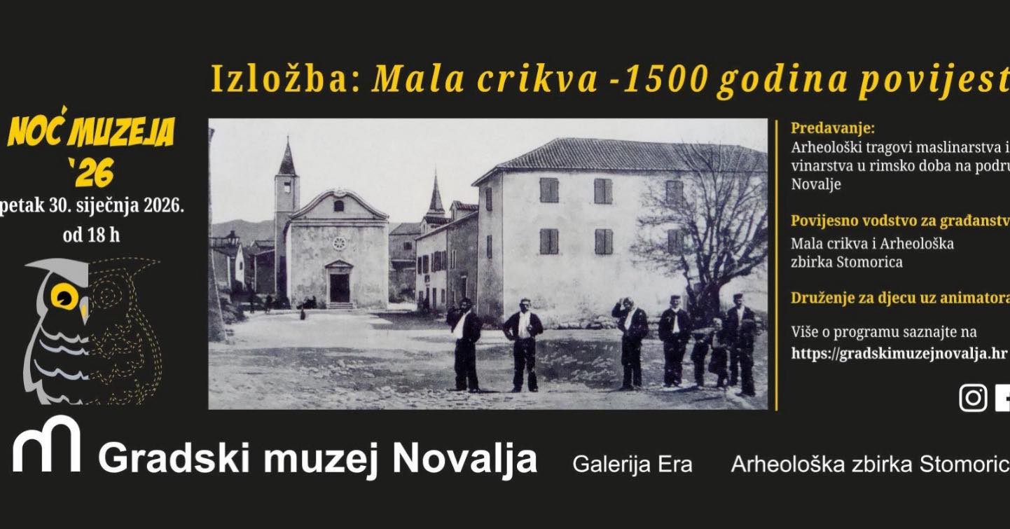 U 18 sati bit će otvorena dvojezična izložba “Mala crikva – 1500 godina povijesti”, posvećena bogatoj kulturnoj baštini jedne od najstarijih sakralnih građevina na otoku Pagu.