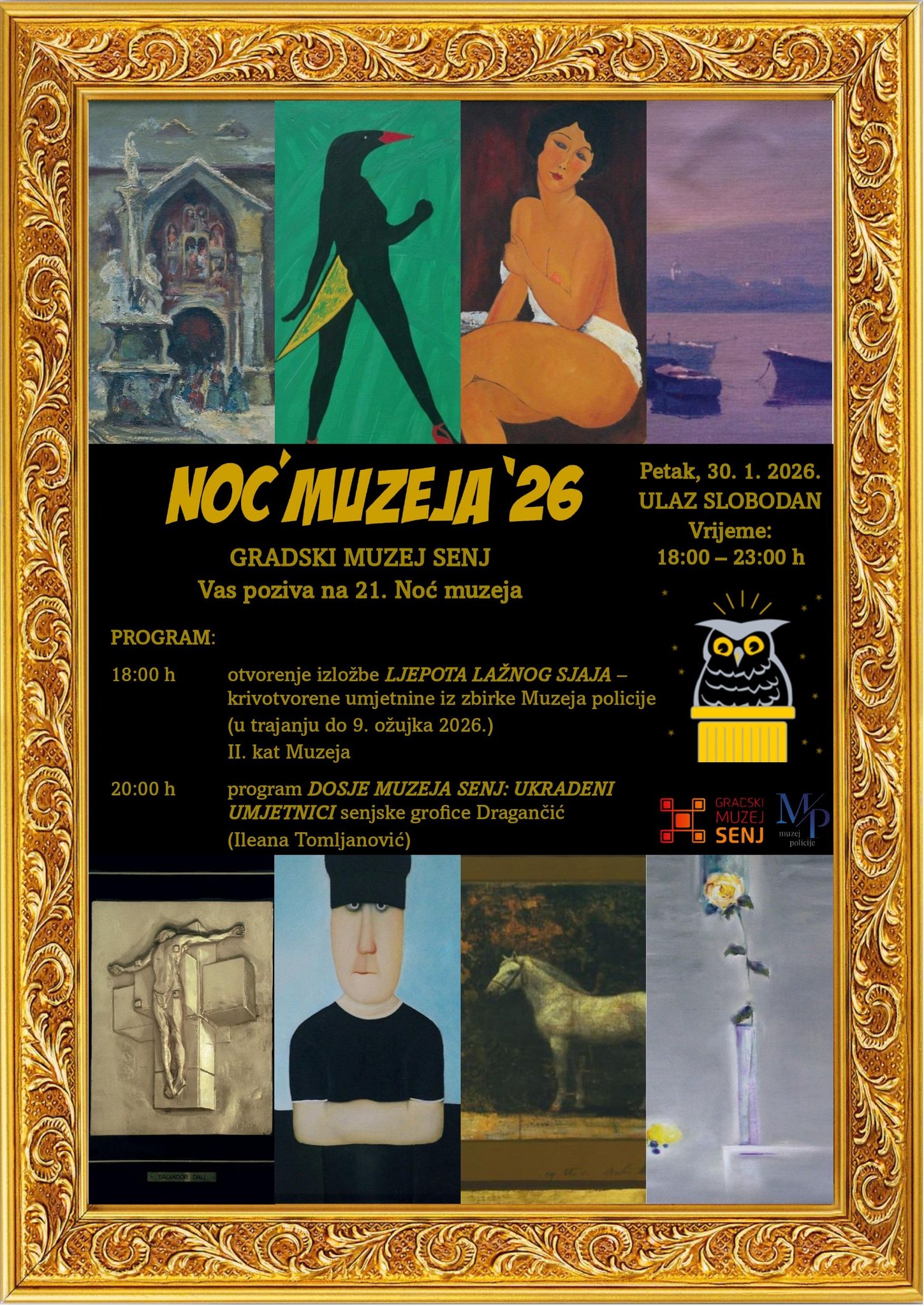 Noć muzeja u Senju obilježit će izložba “Ljepota lažnog sjaja – krivotvorene umjetnine iz zbirke Muzeja policije”, postavljena na drugom katu muzeja.