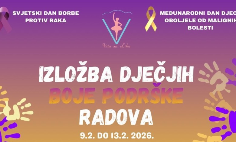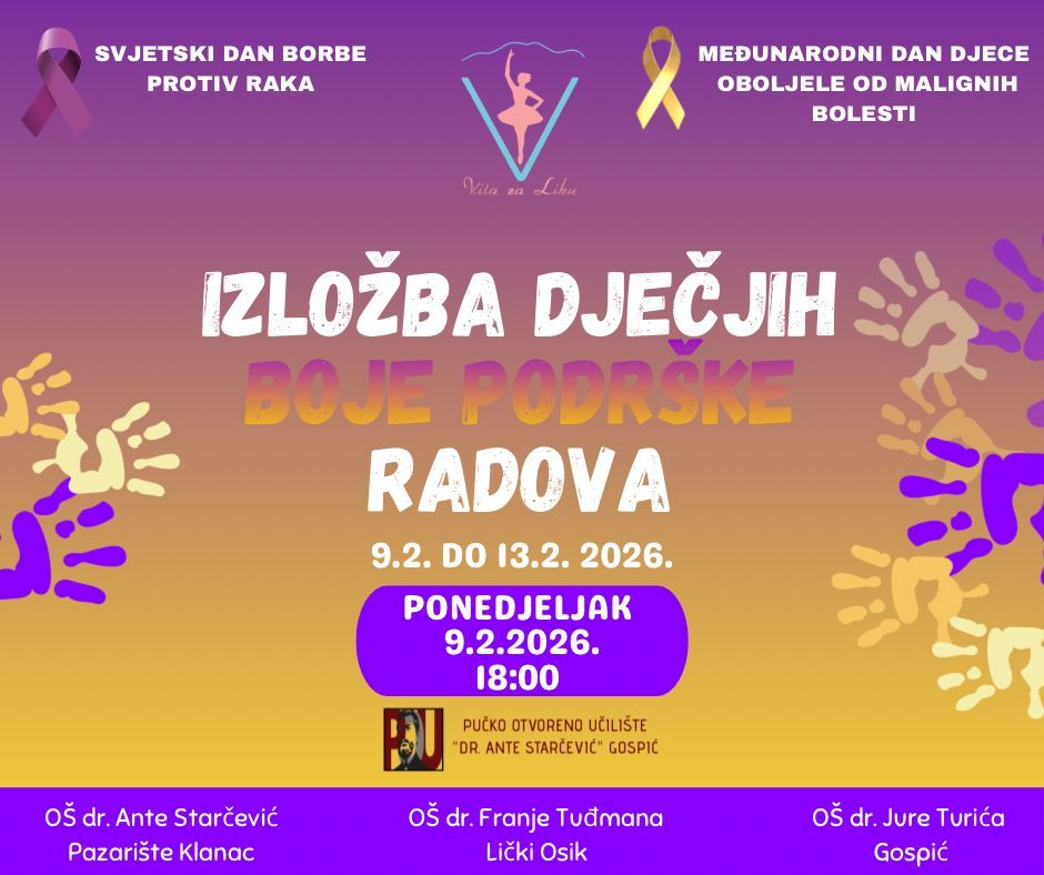 Udruga Vila za Liku poziva građane na otvorenje izložbe dječjih radova pod nazivom “Boje podrške”, koja je nastala kao izraz suosjećanja i podrške djeci i oboljelima od malignih bolesti.