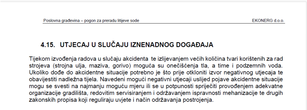 Elaborat zaštite okoliša, utjecaj u slučaju iznenadnog događaja: Pogon za preradu litijeve sode u Gospiću