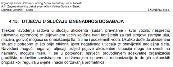 Elaborat zaštite okoliša, utjecaj u slučaju iznenadnog događaja: Izgradnja čvora Žažina kod Petrinje