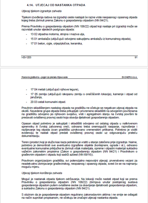 Elaborat zaštite okoliša, utjecaj od nastanka otpada: Pogon za preradu litijeve sode u Gospiću