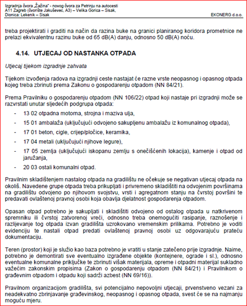 Elaborat zaštite okoliša, utjecaj od nastanka otpada: Izgradnja čvora Žažina kod Petrinje