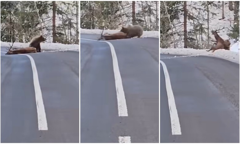 Snimka medvjeda koji vuče jelena preko ceste pojavila se na društvenim mrežama.