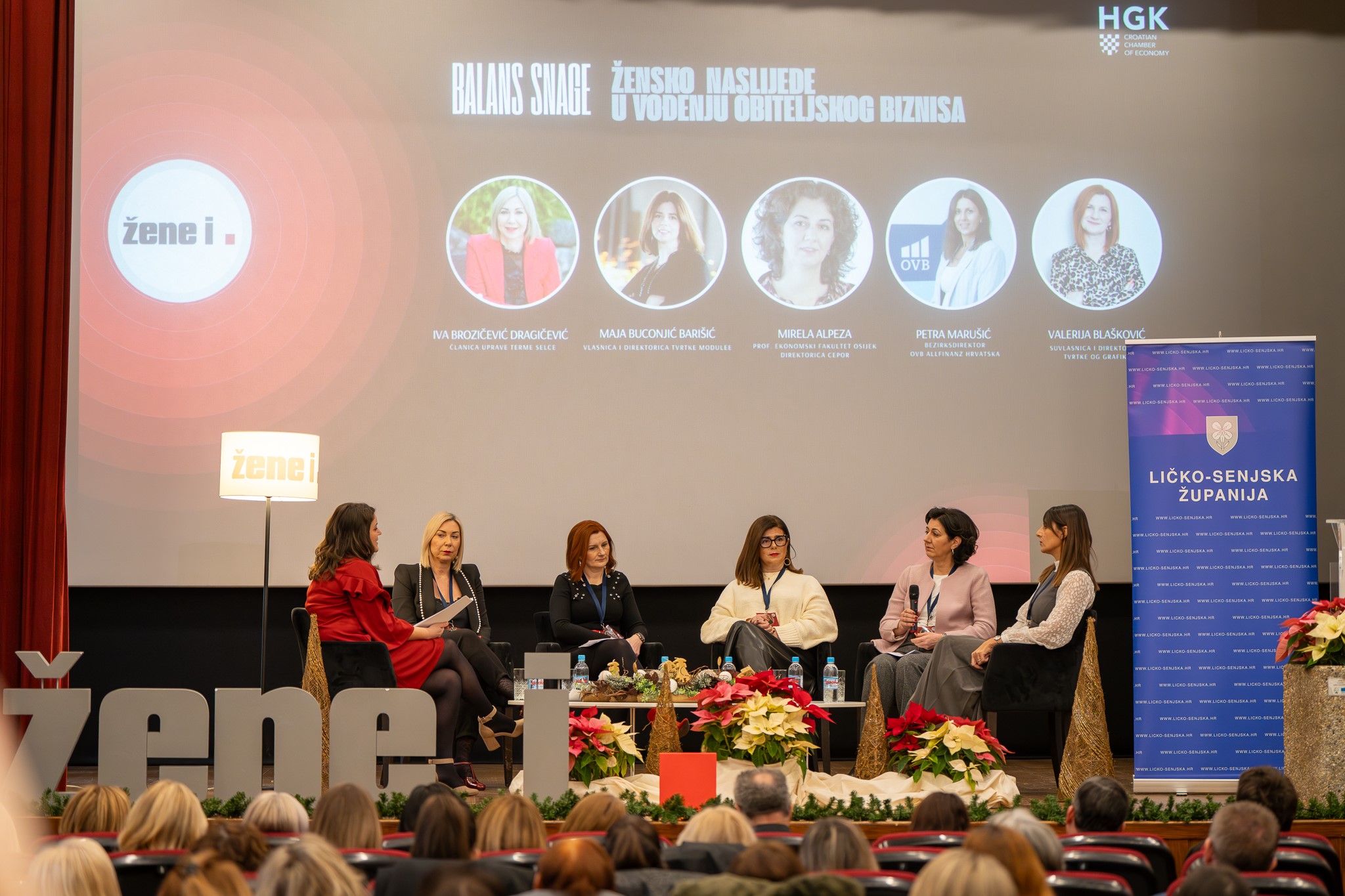 Tema prvog panela bila je “BALANS SNAGE – žensko naslijeđe u vođenju obiteljskog biznisa”, a Iva Brozičević Dragičević, članica uprave Terme Selce, Maja Buconjić Barišić, direktorica tvrtke Modulee, Mirela Alpeza, profesorica na Ekonomskom fakultetu u Osijeku i direktorica CEPOR-a, Petra Marušić, Bezirksdirektor za OVB Allfinanz Hrvatska te Valerija Blašković, suvlasnica i direktorica tvrtke OG Grafika, otkrile su prednosti i izazove nasljeđivanja i vođenja obiteljskog poslovanja, kako zadržati poslovanje uspješnim, kako zaslužiti poštovanje članova obiteljskog poslovanja te stavile naglasak na važnost kontinuirane edukacije pa čak i u konkurentskim tvrtkama. Pozornicom su dominirale priče koje su potvrdile kako nasljeđivanje biznisa nije lakši put, već često dvostruki mač s kojim treba jako oprezno balansirati i u vremenima dobrog poslovanja, a naročito u teškim vremenima kada je opcija i gašenje poslovanja.